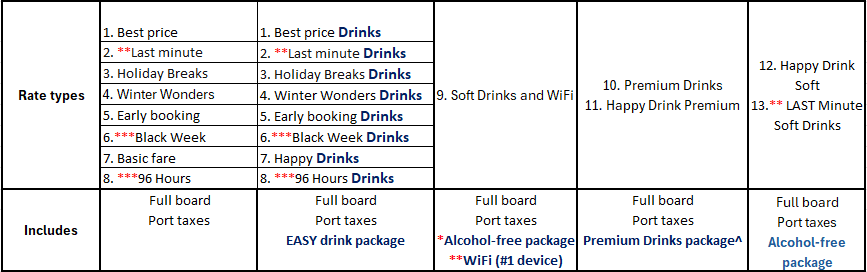 - Important: the Easy and Premium Extra Packages can be used for a maximum of 15 alcoholic beverages per day per guest